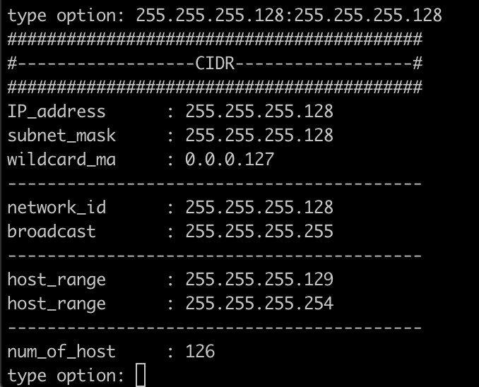 type option 에 255.255.255.128:255.255.255.128를 복사해 붙여넣는다.