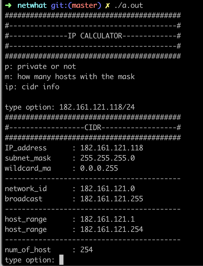 netwhat_calculator.c를 실행한다. (gcc netwhat_calculator.c) - 생성된
