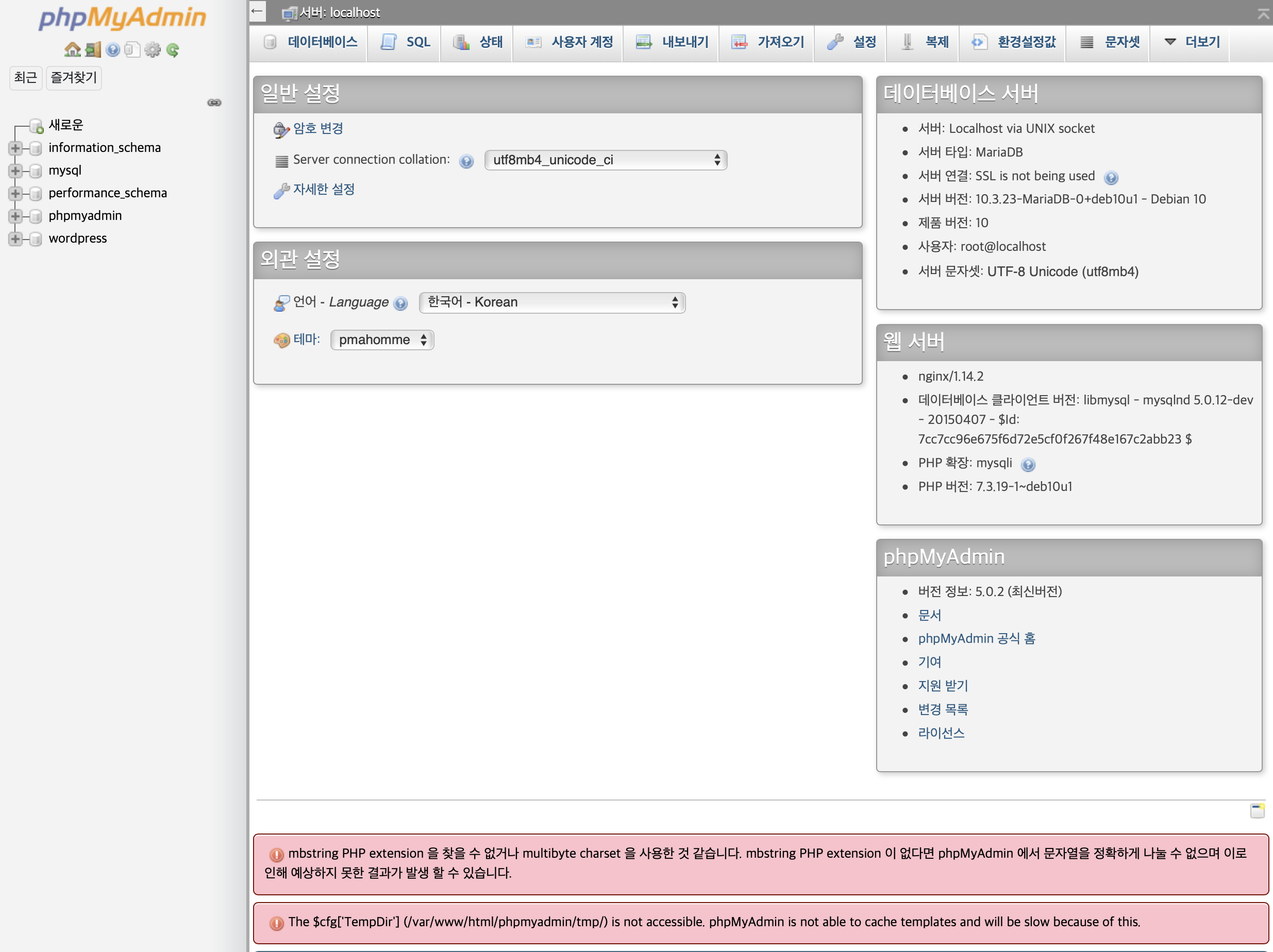 phpMyAdmin 작동 제대로 하는지 확인하기