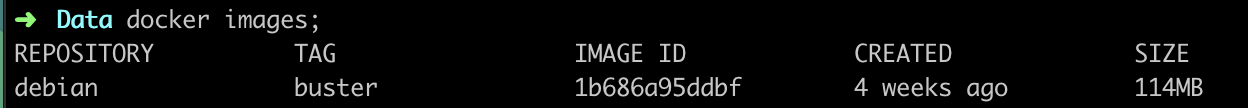 docker images <- 이걸로 확인. debian buster라는 이름의 파일이 각각 하나씩 생겨있음
