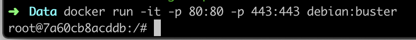 docker run -it -p 80:80 -p 443:443 debian:buster