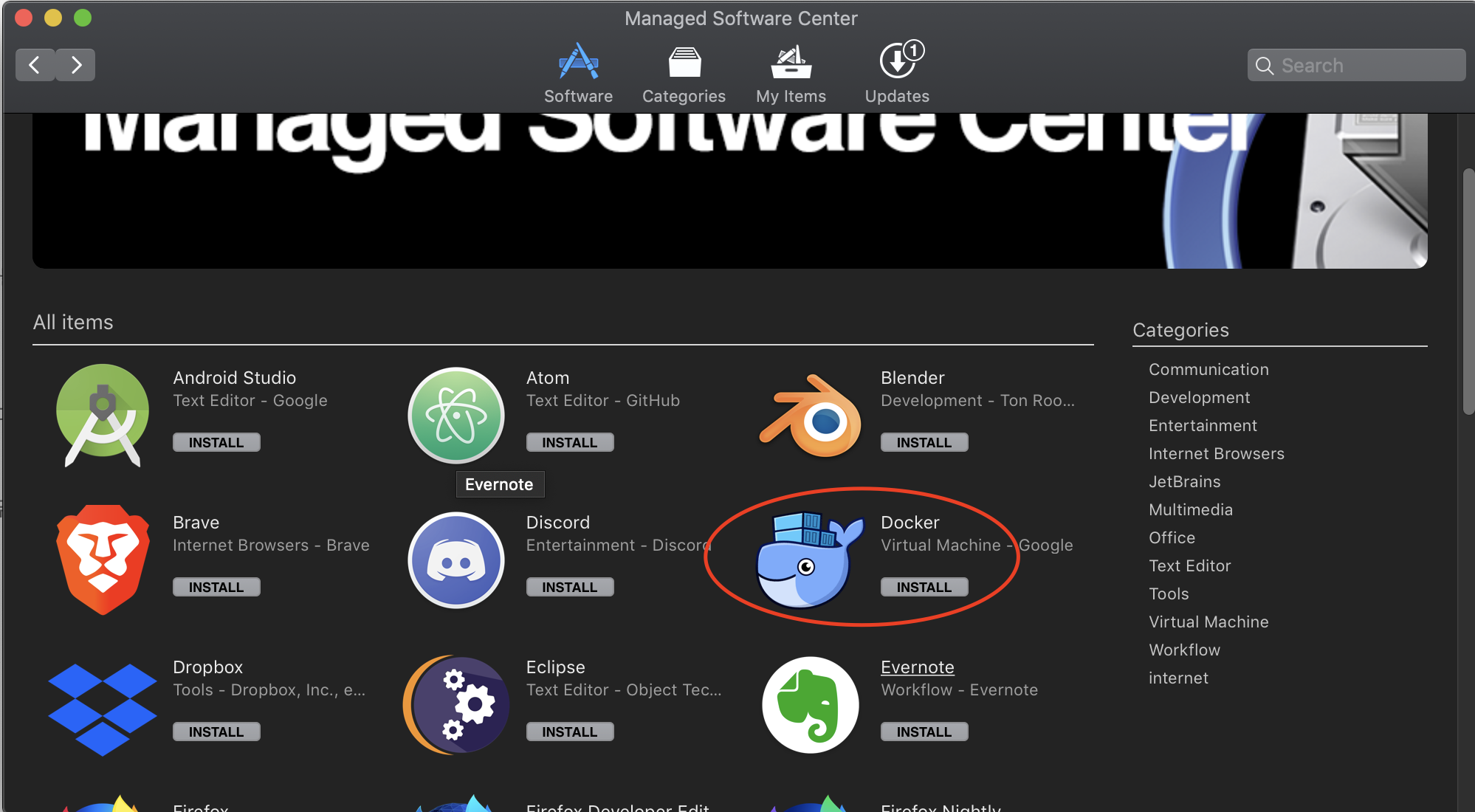 클러스터 managed software center에서 docker install